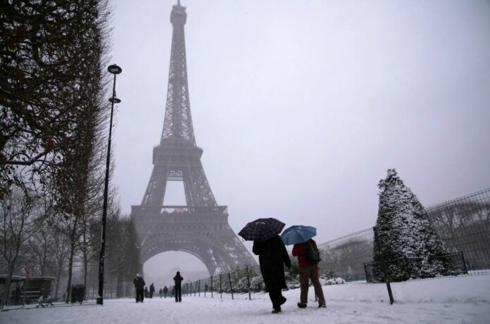 Në Paris, një skiator u pa duke rrëshqitur përgjatë bregut të mbuluar me dëborë të lumit Senë, ndërsa rrugët dhe parqet përreth Kullës Eiffel dhe Muzeut të Luvrit u mbuluan nga bora, duke shkaktuar kaos në trafik në disa zona të Francës, shkruan AP, transmeton Dukagjini.