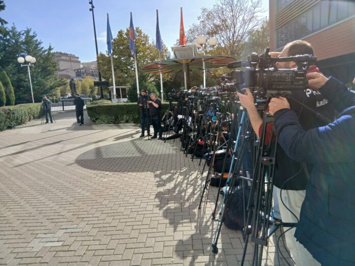 Mediat janë të pranishme jashtë objektit të Kuvendit dhe presin deklarime nga pjesëmarrësit pas përfundimit të bisedimeve.