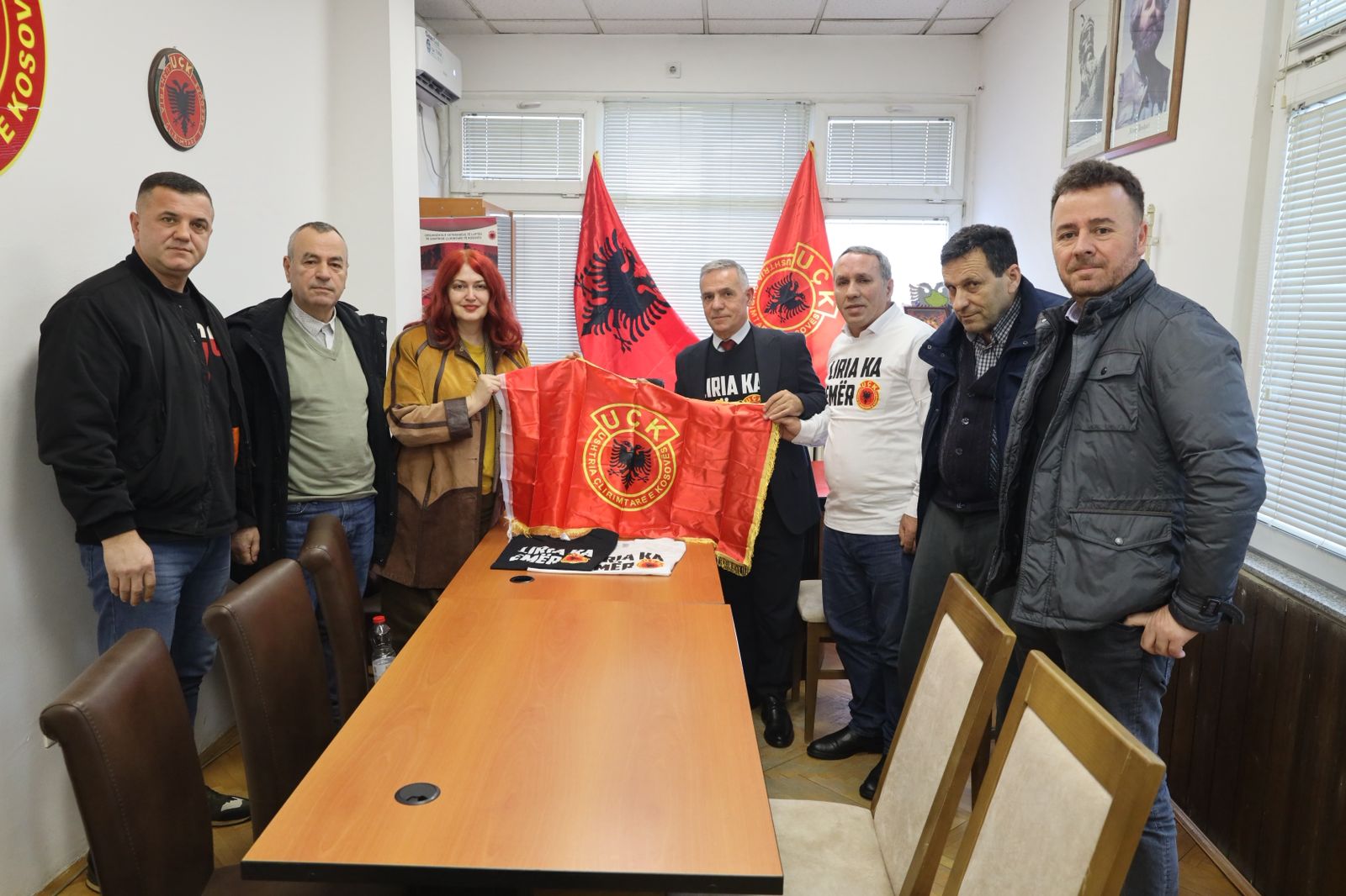 Së pari, Hoxha është pritur në një takim të përbashkët nga ish-komandanti i Zonës Operative të Karadakut, Ahmet Isufi, përfaqësuesit e OVL e UCK-së në Gjilan, Xhevdet Mehmeti dhe Agim Mehmeti, si dhe përfaqësuesi i Shoqatës së të Burgosurve Politikë të Gjilanit, Selajdin Abdullahu.