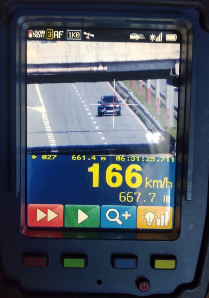Policia e Kosovës njofton se Njësia për Kontroll të Autostradave ka identifikuar shoferin duke drejtuar mjetin me shpejtësi 166 km/h ë zonën ku kufizimi i shpejtësisë është 80 km/h.