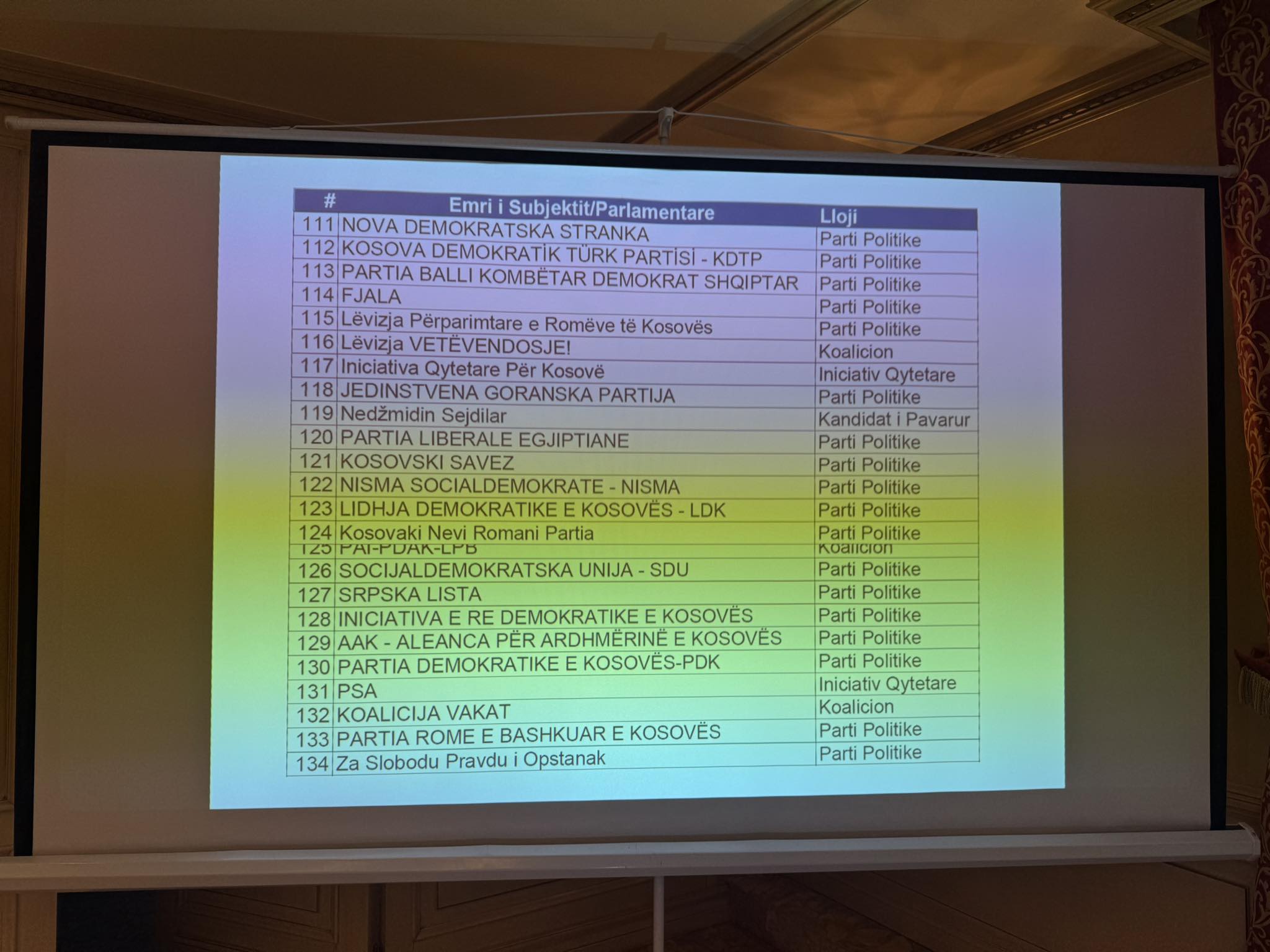 Komisioni Qendror i Zgjedhjeve ka bërë tërheqjen e numrave për renditjen e subjekteve politike në fletëvotimin e zgjedhjeve të parakohshme për Kuvendin e Kosovës, të cilat do të mbahen më 28 dhjetor.