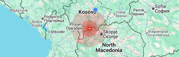 Epiqendra e këtij tërmeti ishte (Lokacioni me koordinata Gjeografike; 42.144; 20.985)