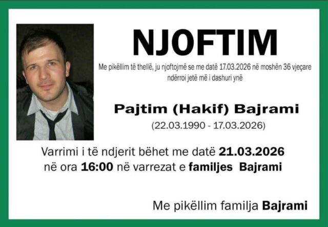 Sipas njoftimit të familjes 36-vjeçari do të varroset në Skenderaj dhe ceremonia do të nis nga ora 16:00, njofton Dukagjini.