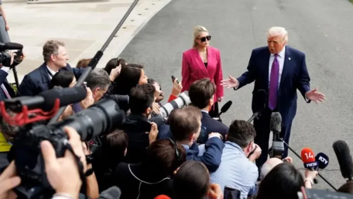 Duke folur para gazetarëve jashtë Shtëpisë së Bardhë, Trump u pyet se çfarë do të duhet për t’i dhënë fund luftës në Iran.