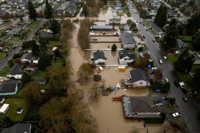 Përmbytjet u shkaktuan nga një “lum atmosferik” jashtëzakonisht i fuqishëm, i cili solli mbi 30 centimetra reshje shiu në disa zona të Uashingtonit perëndimor, duke fryrë lumenjtë dhe ngopur tokën me ujë. Sipas autoriteteve, deri tani nuk raportohet për viktima në njerëz.