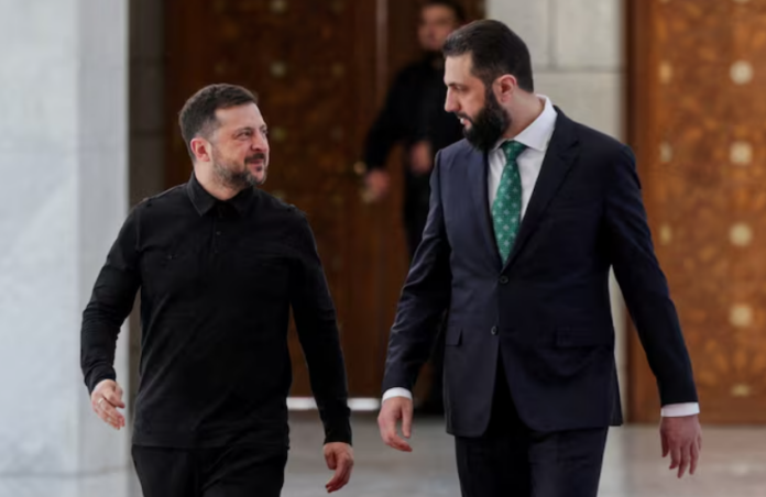 Presidenti i Ukrainës, Volodymyr Zelenskiy, ka deklaruar se Ukraina dhe Siria kanë rënë dakord për rritje të bashkëpunimit në fushën e sigurisë dhe zhvillimit, gjatë një vizite të tij në Damask, ku u takua me presidentin sirian, Ahmed al-Sharaa.