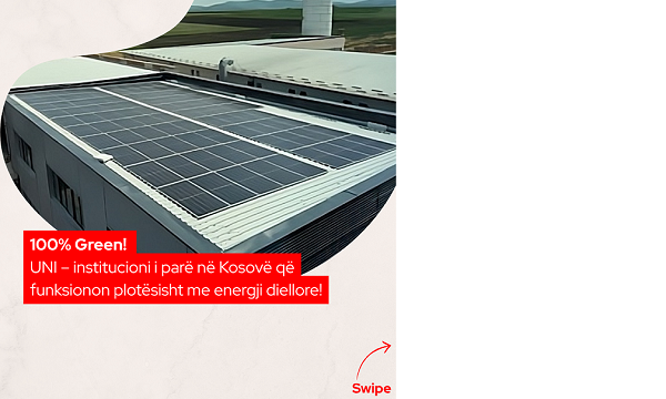 UNI – Universum International College, i fuqizuar nga Arizona State University, është bërë institucioni i parë i arsimit të lartë në Kosovë që funksionon 100% me energji të ripërtritshme, duke instaluar sisteme moderne të paneleve diellore në të gjitha kampuset e tij.