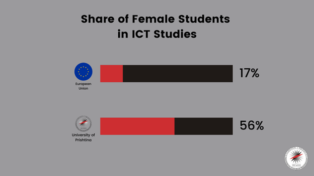 Vajzat në TIK po e tejkalojnë edhe mesataren e Bashkimit Evropian. Sipas statistikave aktuale, në këtë fushë, nga numri i përgjithshëm i studentëve, femra del të jenë vetëm 17% e tyre. Kjo është një dëshmi shtesë e përpjekjeve të UP-së dhe vendit për të inkurajuar dhe mbështetur vajzat dhe gratë në këtë fushë