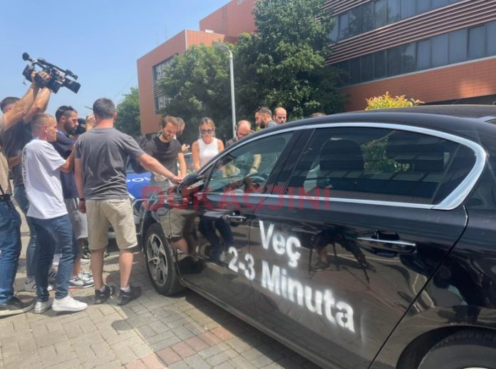 “Veç dy-tre minuta” është fraza e cila është shkruar në veturat zyrtare nga aktivistë të Partisë Socialdemokrate (PSD).