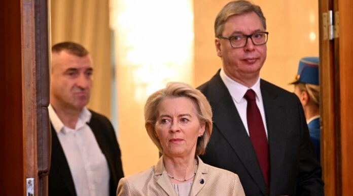 Presidentja e Komisionit Evropian, Ursula von der Leyen, deklaroi në një konferencë të përbashkët me presidentin e Serbisë, Aleksandar Vuçiq, se qëndrimi i Bashkimit Evropian nënkupton lirinë dhe jo represionin, përfshirë të drejtën për tubim paqësor.