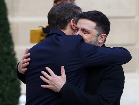 Presidenti i Ukrainës, Volodymyr Zelensky, ka mbërritur në Pallatin Elysee për një takim me presidentin francez, Emmanuel Macron.