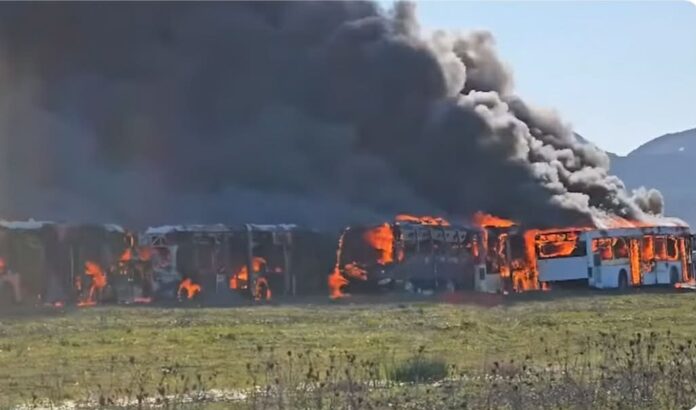 Një zjarr i madh ka rënë mesditën e sotme në Fllakë, Durrës, në një zonë të vjetër parkimi autobusësh, ku disa mjete të amortizuara dhe të papërdorura kanë marrë flakë.